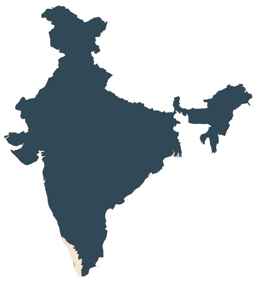 Le Kerala, un État qui épouse le rivage de la mer d’Oman à la pointe sud de l’Inde, doit sa physionomie à ses paysages – un réseau de voies d’eau miroitantes, les backwaters, sépare près de 600 km de côte des montagnes des Ghats occidentaux, tapissées de plantations de thé, de café et d’épices. Aussi relaxante qu’un massage traditionnel, cette terre luxuriante forme un havre de paix à l’écart de la frénésie générale, comme si l’Inde, passée de l’autre côté du miroir, devenait soudain plus calme. Outre les backwaters où glissent house-boats et pirogues, le Kerala appuie sa réputation de paradis naturel sur son environnement sauvage, où vivent oiseaux exotiques, éléphants et tigres, et sur ses paysages de rizières. Côté culture, l’état porte haut des traditions bien vivantes, avec les représentations de kathakali, une forme de théâtre dansé, et les courses de bateaux-serpents notamment. C’est aussi un haut lieu de la médecine ayurvédique.